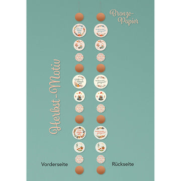 13 Kreise, Bronze-Papier, genäht, ca. 100 cm lang, wird gefaltet in einem gestalteten Umschlag aus Tranzparenzpapier geliefert.
