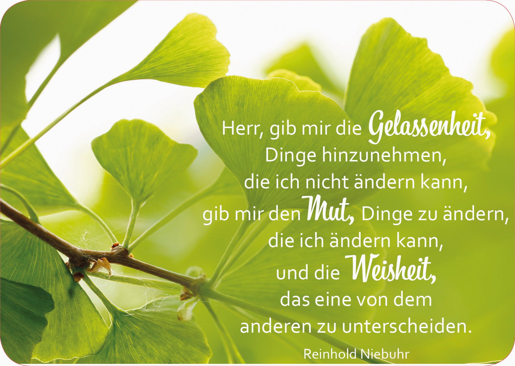 Herr, gib mir die Gelassenheit, Dinge hinzunehmen, die ich nicht ändern kann, gib mir den Mut, Dinge zu ändern, die ich ändern kann, und die Weisheit, das eine vom anderen zu unterscheiden.