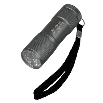 LED-Taschenlampe aus Aluminium mit Handschlaufe und Gravur: