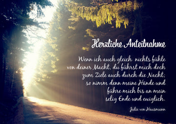Wenn ich auch gleich nichts fühle von deiner Macht, du führst mich doch zum Ziele auch durch die Nacht; so nimm denn meine Hände und führe mich bis an mein selig Ende und ewiglich.