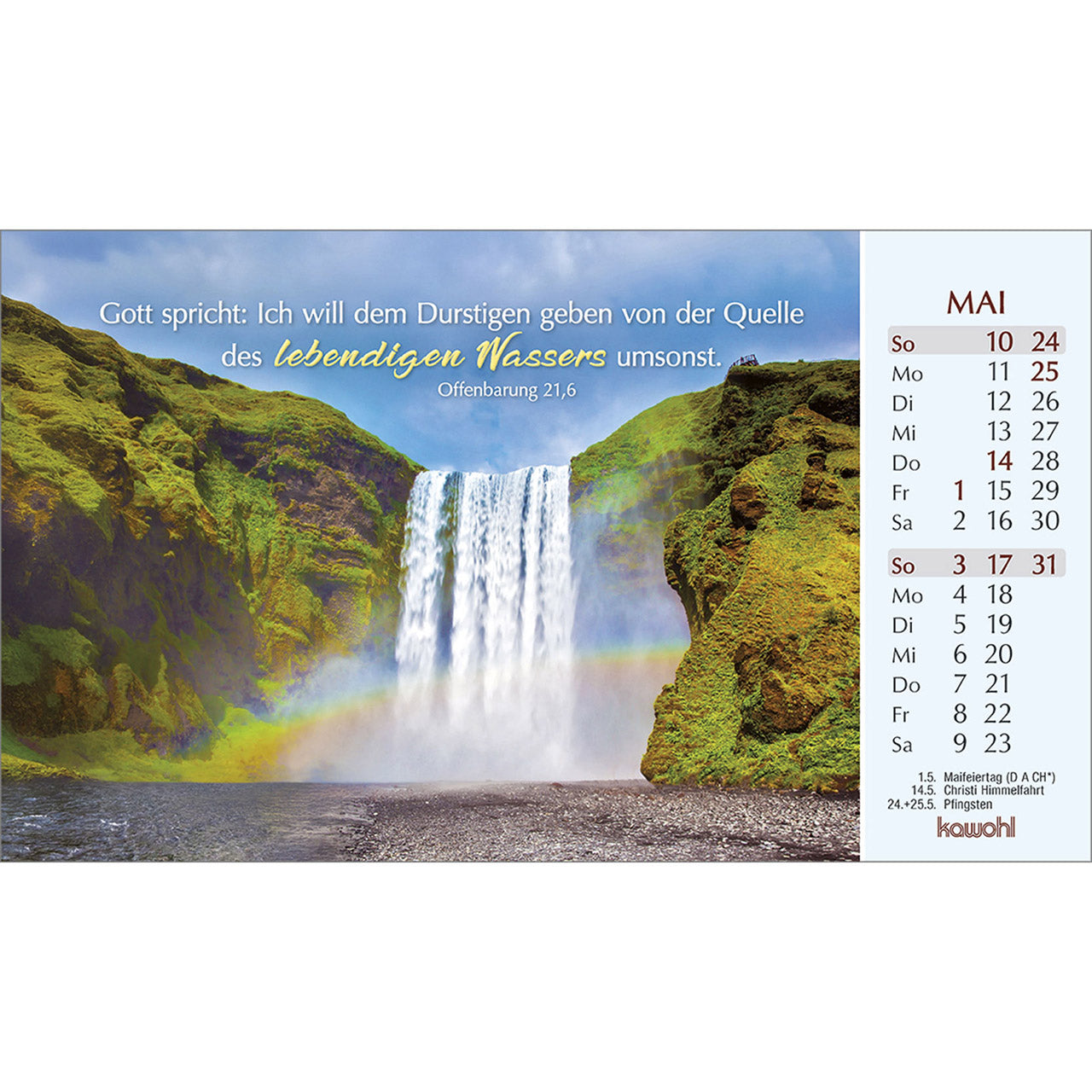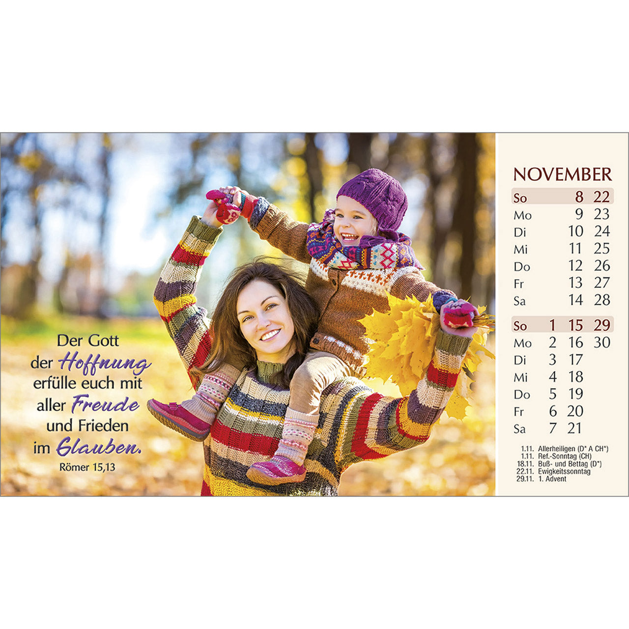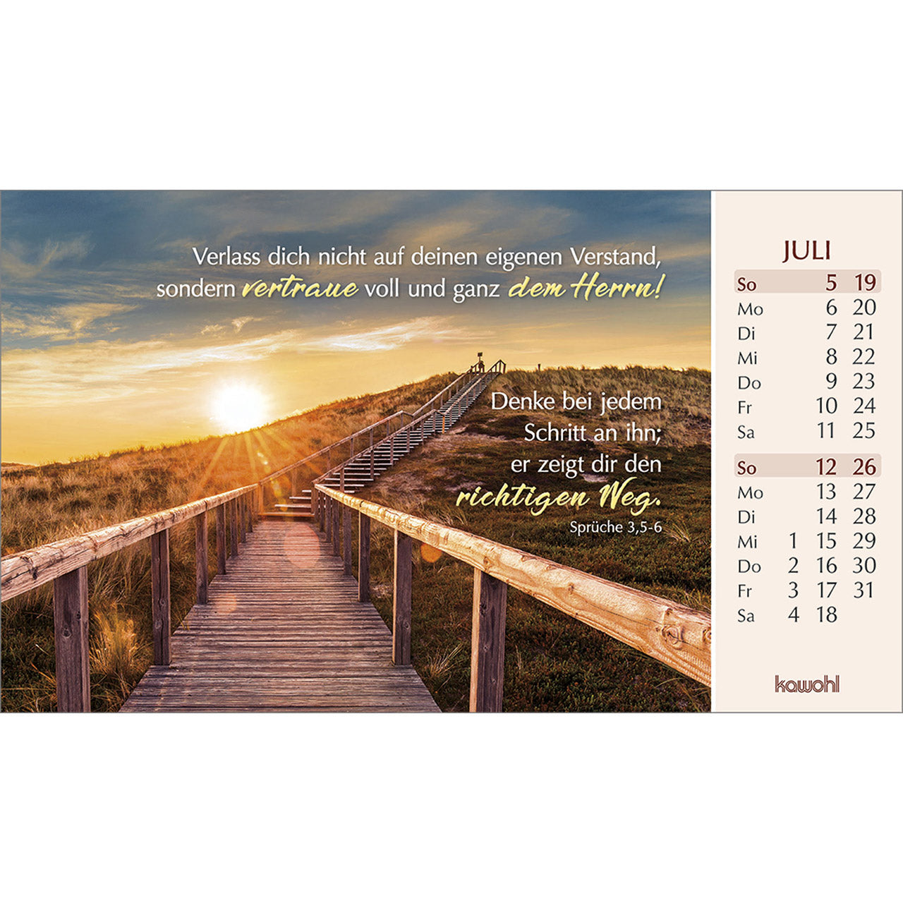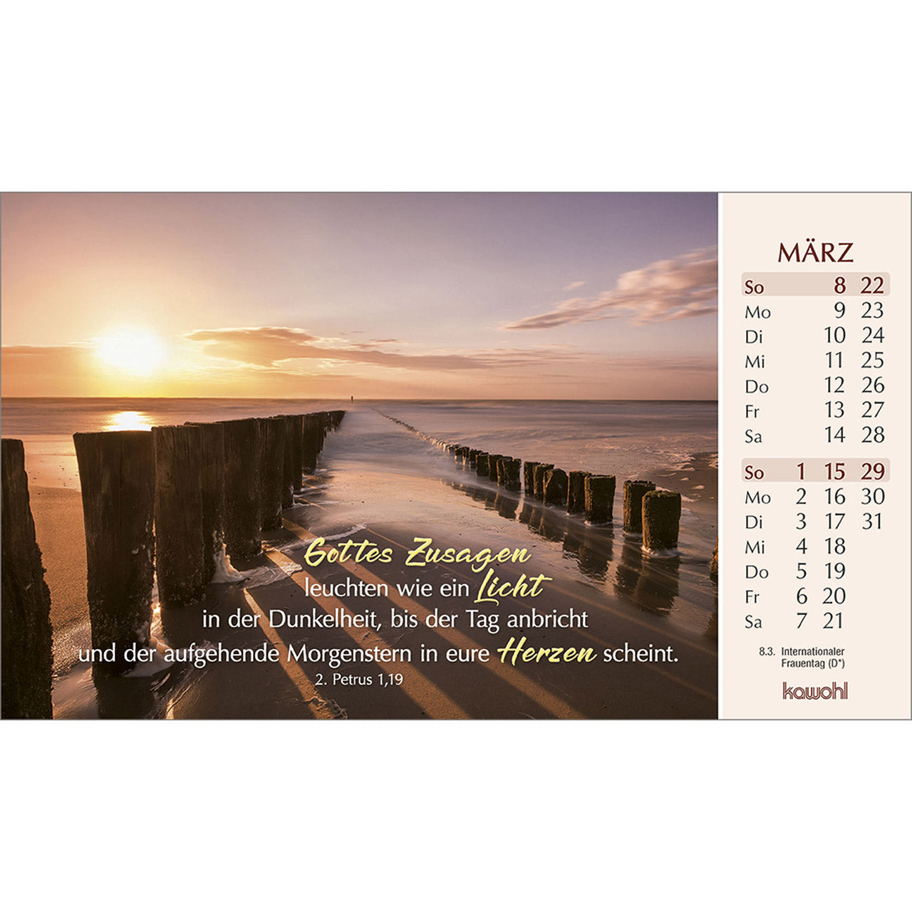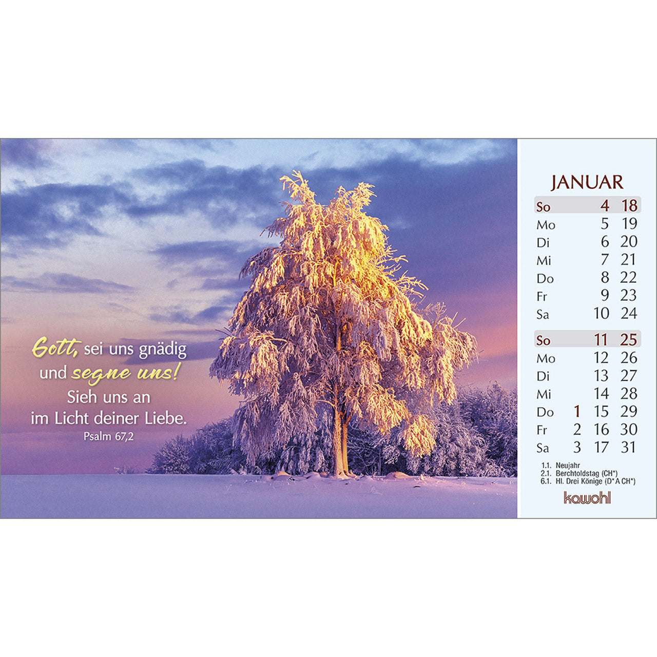 Sonnendurchflutete Stimmungen, meisterhaft fotografiert, und wegweisende, frohmachende Bibelworte geben diesem Kalender seine unverwechselbare, leuchtende Ausstrahlung.
