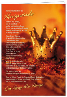 Hiermit verleihe ich Dir die Königswürde. Ich habe Dich erwählt, weil Du unendlich kostbar bist in meinen Augen. Du bist ...