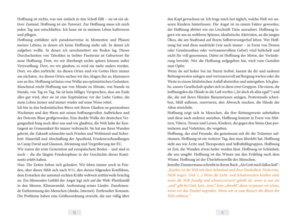 Veronika Smoor schreibt gegen den allgegenwärtigen Blues an und erzählt Geschichten, durch die Hoffnung leuchtet und die zum Hoffen anstiften, denn: "Zur Hoffnung muss du dich entschließen, du kannst sie in deinem Leben kultivieren und pflegen." Ein inspirierendes Lesebuch mit vielen Fotos.
