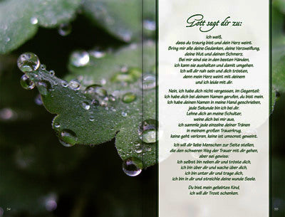 Ergänzend zu ewig gültigen Bibelworten formuliert Bestseller-Autorin Doro Zachmann persönliche Zusprüche, die den Leser Gottes Liebe spüren lassen. Einfühlsam öffnen Sie das Herz für die himmlische Sicht auf zentrale Lebensthemen wie Vergebung, Trost, Führung, Hoffnung oder Segen.