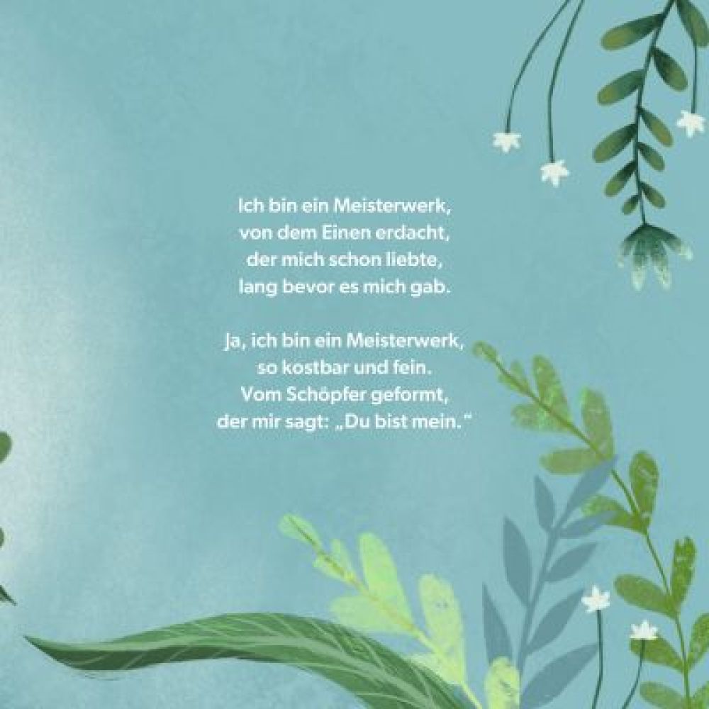 Interaktive Seiten mit ansprechenden Illustrationen laden die kleinen Leser zusätzlich dazu ein, die Kernaussagen des Buches kreativ festzuhalten, um eines aus tiefstem Herzen sagen zu können: Ich bin ein wertvolles Meisterwerk Gottes.