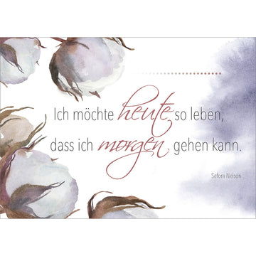 Text: Ich möchte heute so leben, dass ich morgen gehen kann.