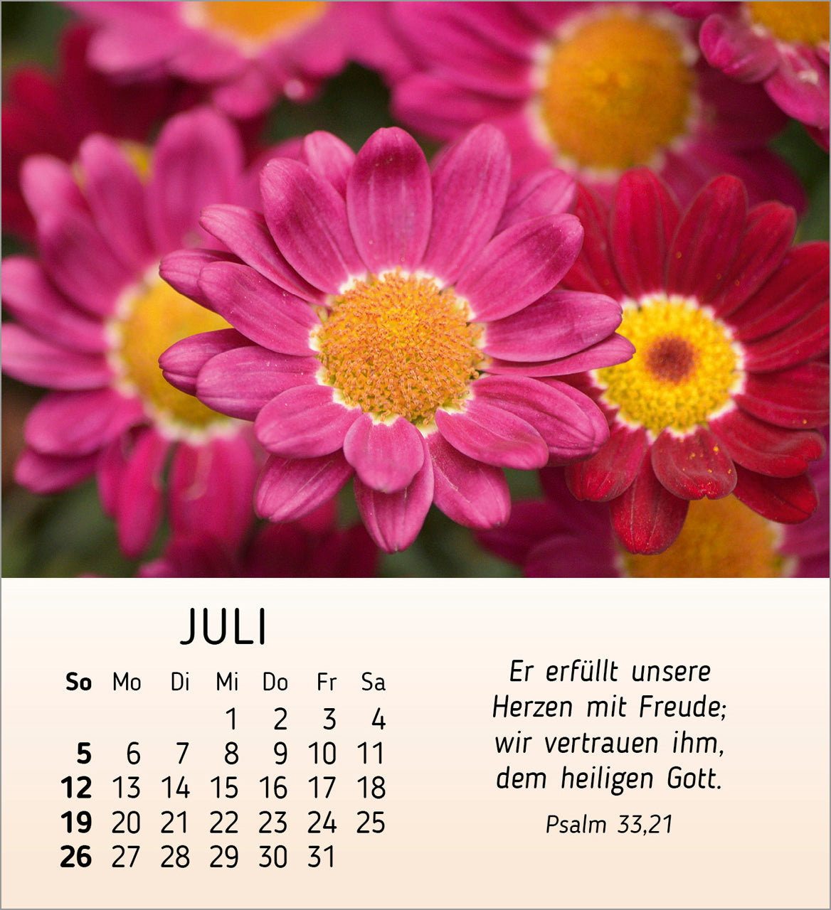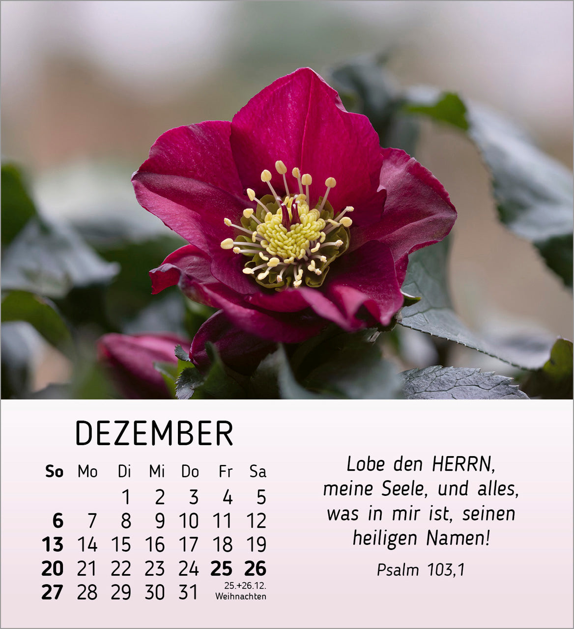 Dieser Kleinkalender widerspiegelt die faszinierende Welt der Blumen.
