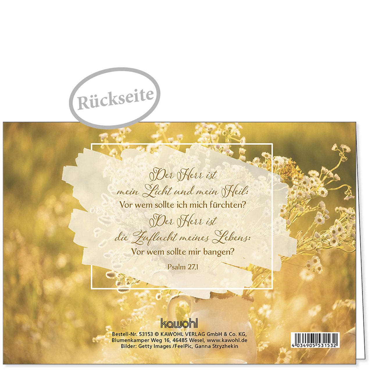 Behutsame und liebevolle Anteilnahme hilft durch die Zeit des Abschiednehmens. Mit dieser Karte zeigen Sie dem Trauernden, dass Sie mitfühlen und an ihn denken. Die sorgsam ausgewählte christliche Botschaft spendet Kraft und Hoffnung.