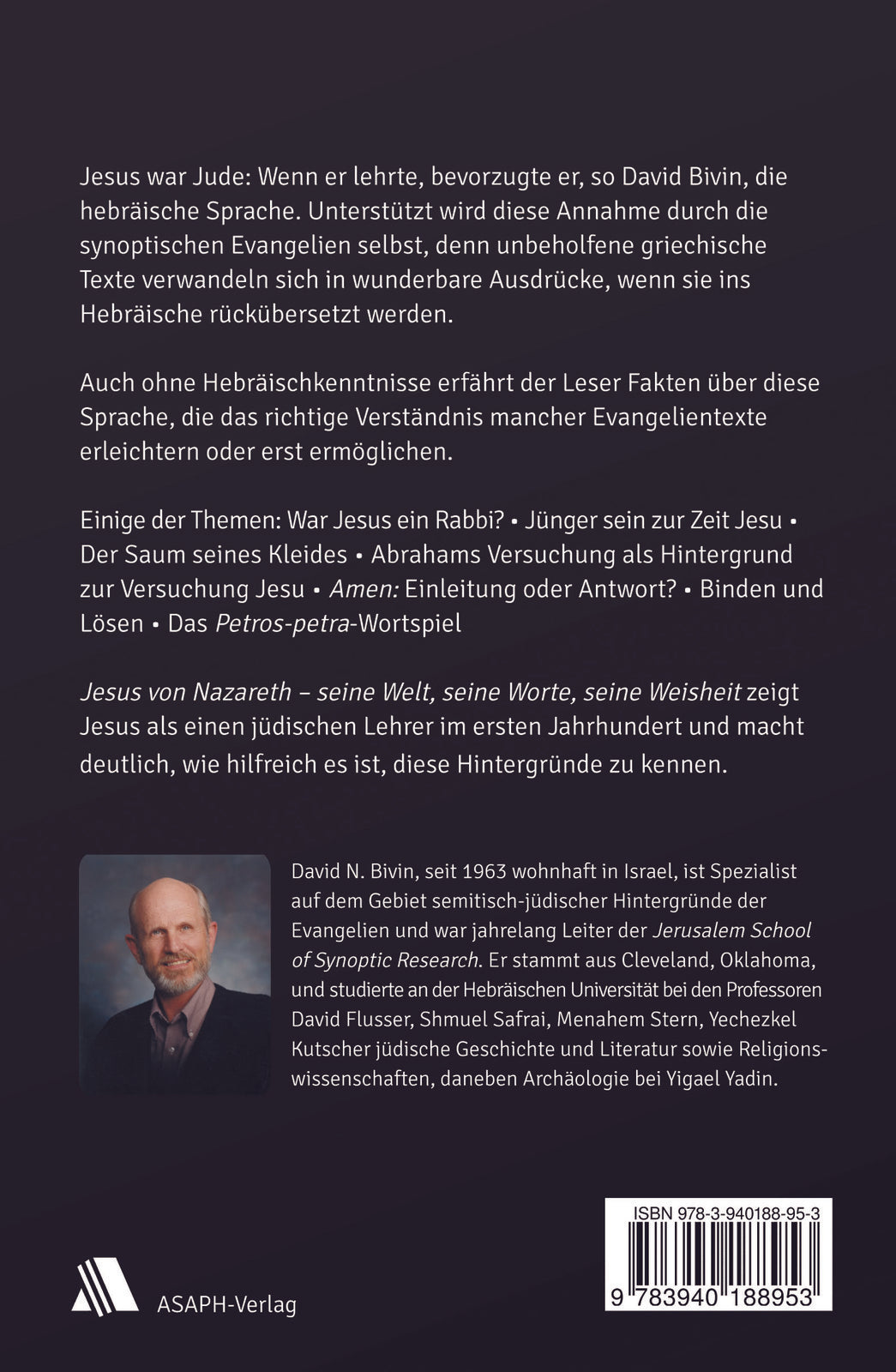 Jesus war Jude: Wenn er lehrte, bevorzugte er, so David Bivin, die hebräische Sprache. Unterstützt wird diese Annahme durch die synoptischen Evangelien selbst, denn unbeholfene griechische Texte verwandeln sich in wunderbare Ausdrücke, wenn sie ins Hebräische rückübersetzt werden.