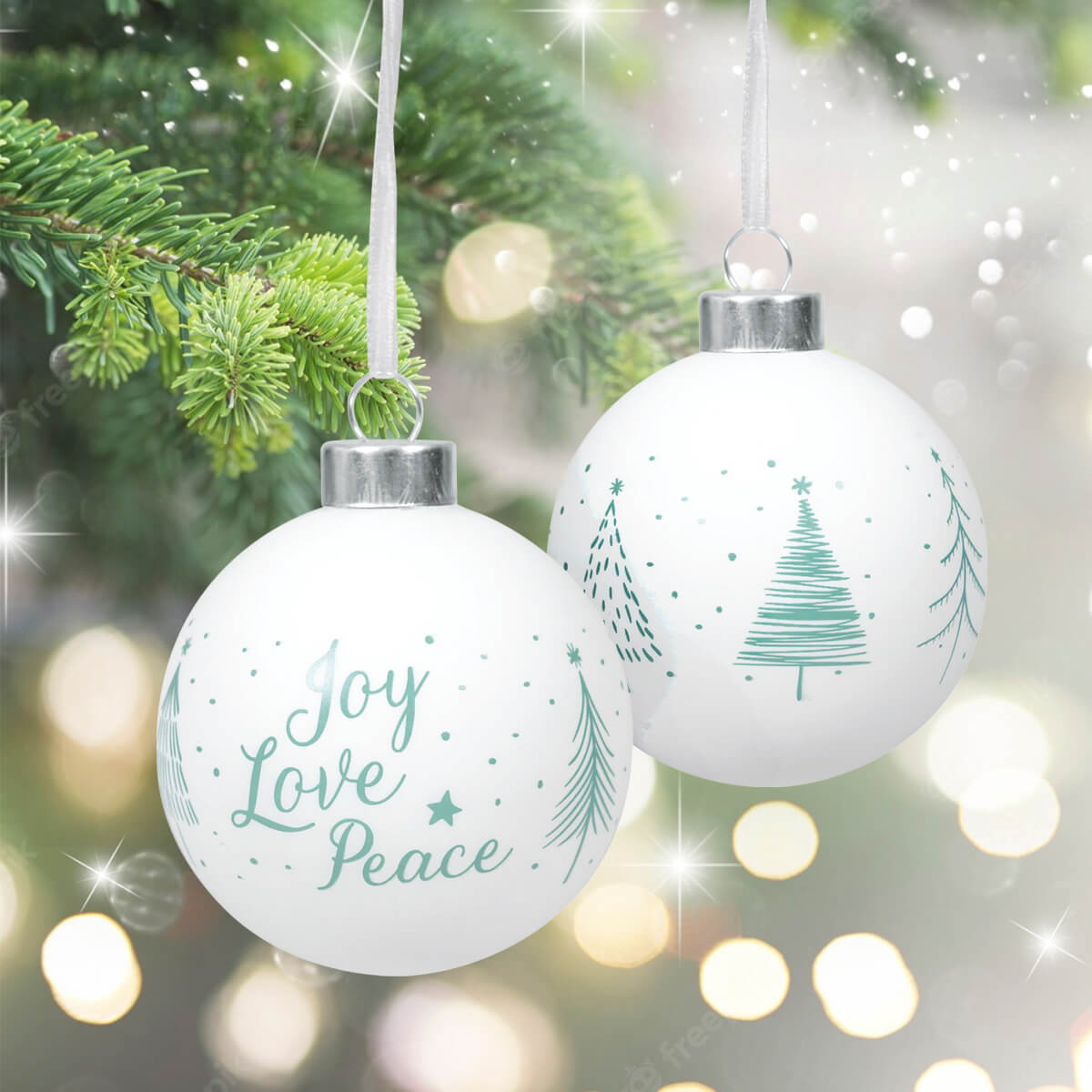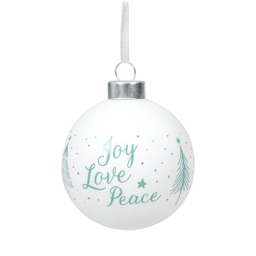 Christbaumkugel aus Glas, rundum bedruckt mit weihnachtlichem Motiv und dem Text: