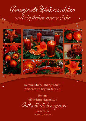 Kerzen, Sterne, Orangenduft - Weihnachten liegt in der Luft. Komm, öffne deine Herzenstür, Gott will dich segnen reich dafür.
