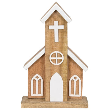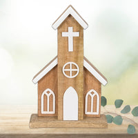 Die Kirche aus Holz mit weiß lackierten Akzenten sorgt besonders bei religiösen Feiertagen für eine festliche Deko.