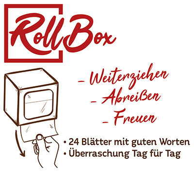 Hübscher Präsentationskarton (8 x 8 x 8 cm) mit 24 Impuls-Abreiß-Blättern auf einer Rolle. Zum Hinstellen oder Aufhängen.