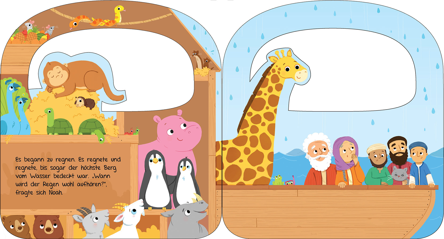 Mit diesem Pappbilderbuch können Kinder gemeinsam mit Noah und den vielen Tieren auf der Arche sein. Sie erleben die Bibelgeschichte auf eine aufregende Art und Weise.