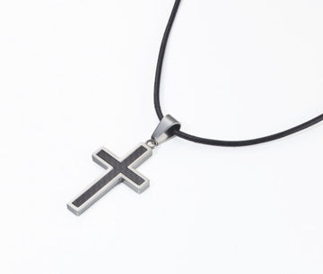 Schlichte Kette mit schwarzen Lederband und Anhänger "Kreuz".