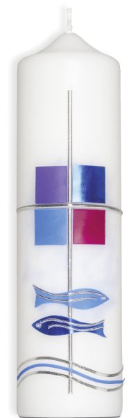 Kreuz/Fische Metallicfolie (Kerze - weiß) Höhe 22 cm