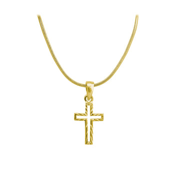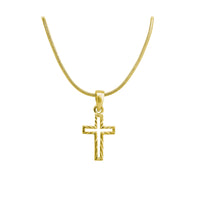 Feiner Kreuz-Anhänger mit bearbeiteter Oberfläche und passender Schlangenkette.