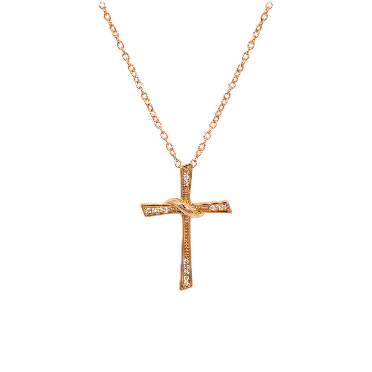 Schöne Halskette mit Kreuz-Anhänger aus Messing in der Trendfarbe rosé.