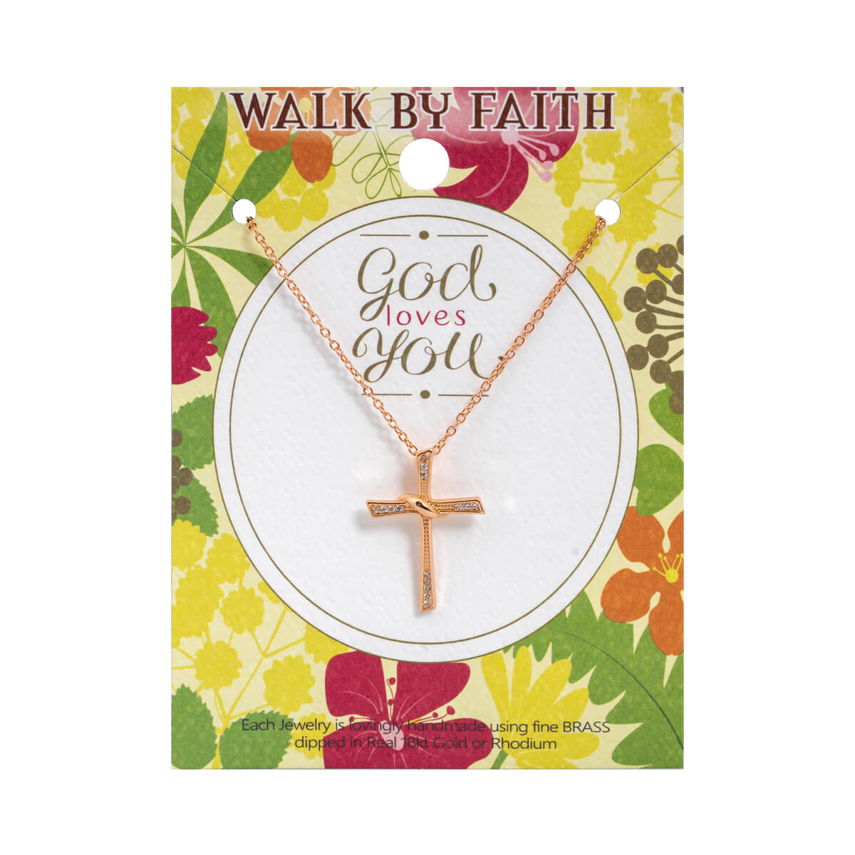 Kreuz - Halskette mit Kreuz-Anhänger aus Messing (Farbe rosé)