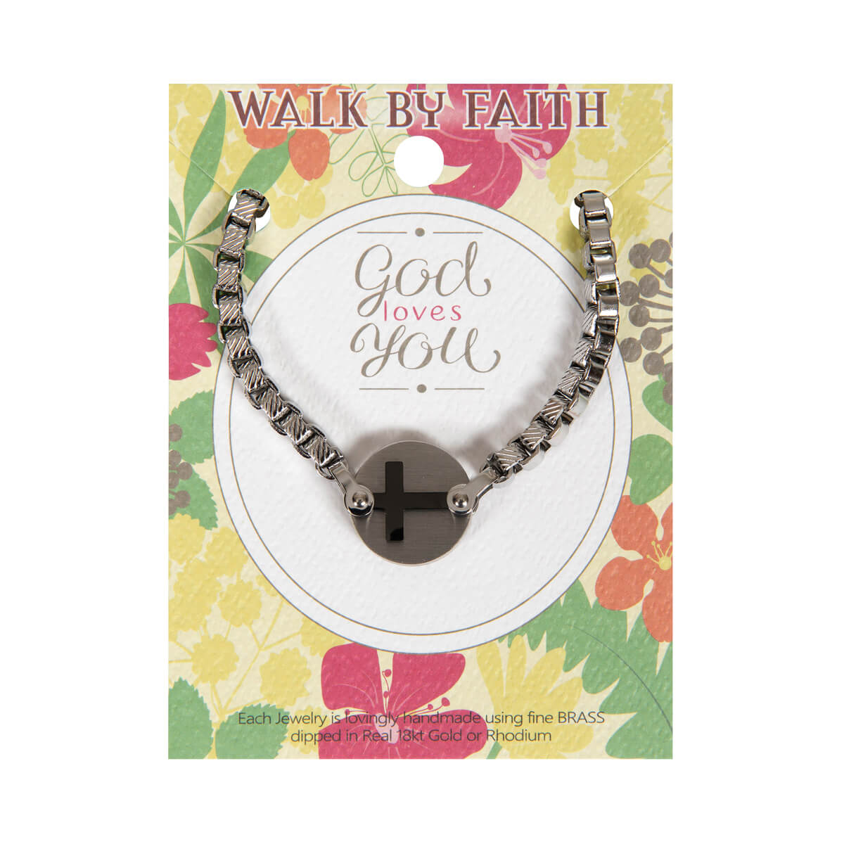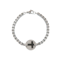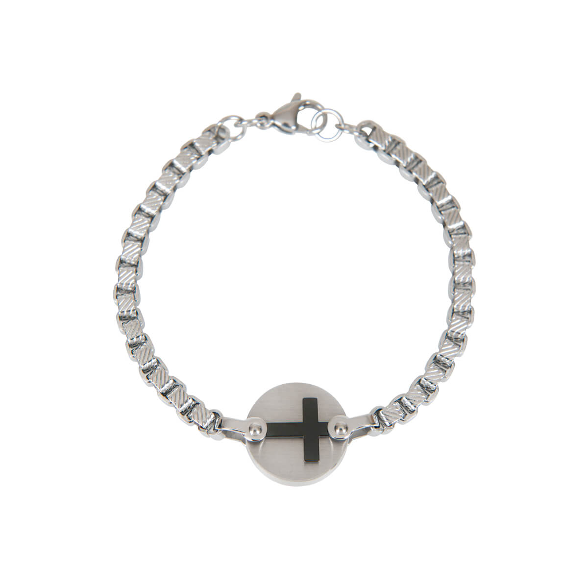 Stylisch-massives Herren-Armband aus Edelstahl mit runder Kreuz-Plakette.