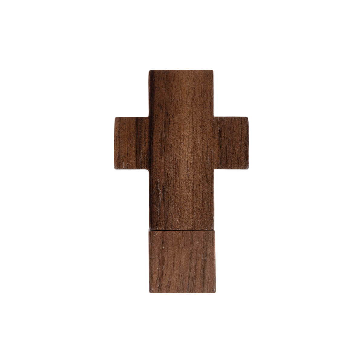 USB-Stick 2.0 mit 64 GB in Kreuzform aus dunklem Nussbaum-Holz