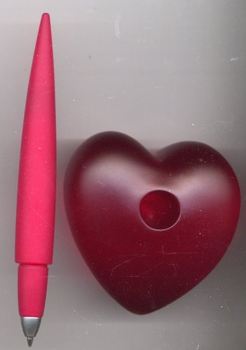 Kugelschreiber auf Herzständer - Farben: rot, orange, blau