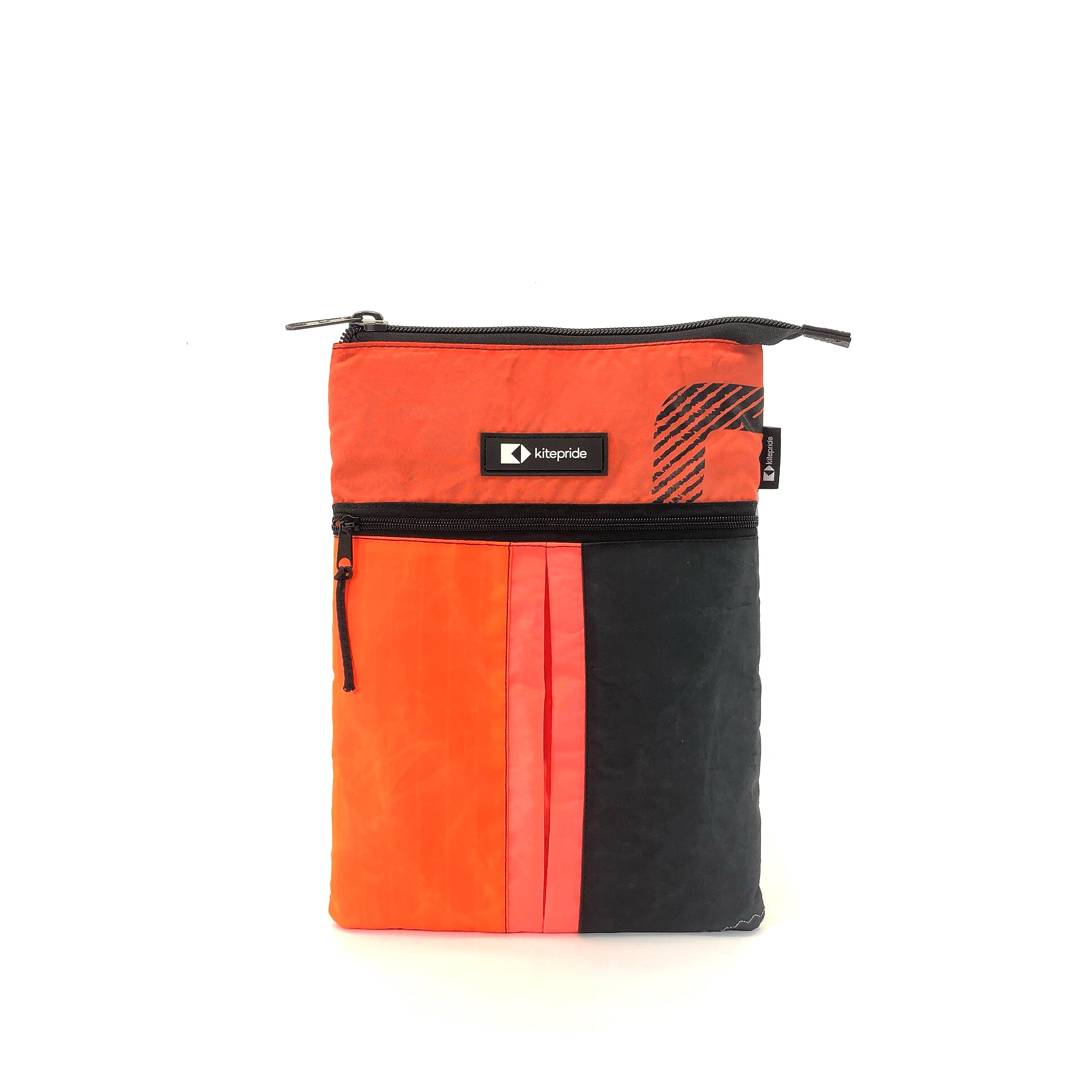 Für Remote-Worker und alle, die viel unterwegs sind und alles dabeihaben müssen, ist die upgecycelte Laptophülle aus Kitesurf-Segel genau das Richtige! Laptop, Ladegerät und Telefon - alles findet seinen Platz und wird zum Schutz mit recycelten Neoprenanzügen gepolstert. Die farbenfrohe Außentasche mit Reißverschluss ist optimal zur Aufbewahrung aller kleinen Utensilien.