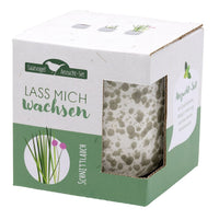 Anzucht-Set bestehend aus Keramikbecher, Quelltablette, Saatgut und Anleitung.
