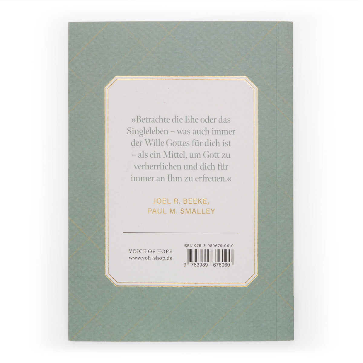 Joel R. Beeke und Paul M. Smalley erklären biblische Wahrheiten über das Singlesein und geben seelsorgerliche, praktische Ratschläge, wie man ein Gott verherrlichendes Leben führen kann. Sie zeigen, wie Singles in der Gemeinde ihr Singlesein als den Willen Gottes für sie erkennen können und als ein Mittel, Gott für immer zu verherrlichen und sich an Ihm zu erfreuen.