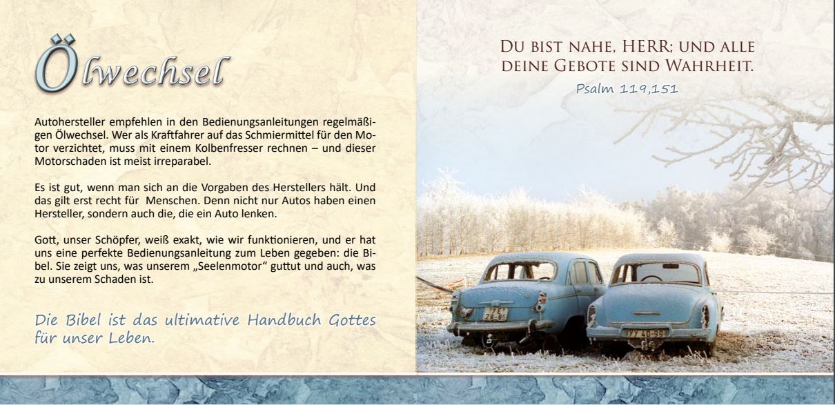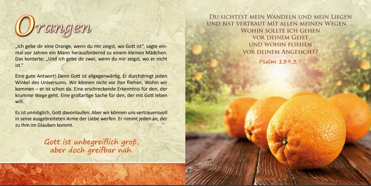 Dieses Heft ist ansprechend gestaltet und mit vielen Bildern versehen. Es bringt eine klare Botschaft in einem ansprechenden Rahmen. "Leben mit Perspektive" eignet sich sehr gut zum Weitergeben bei vielen Gelegenheiten.