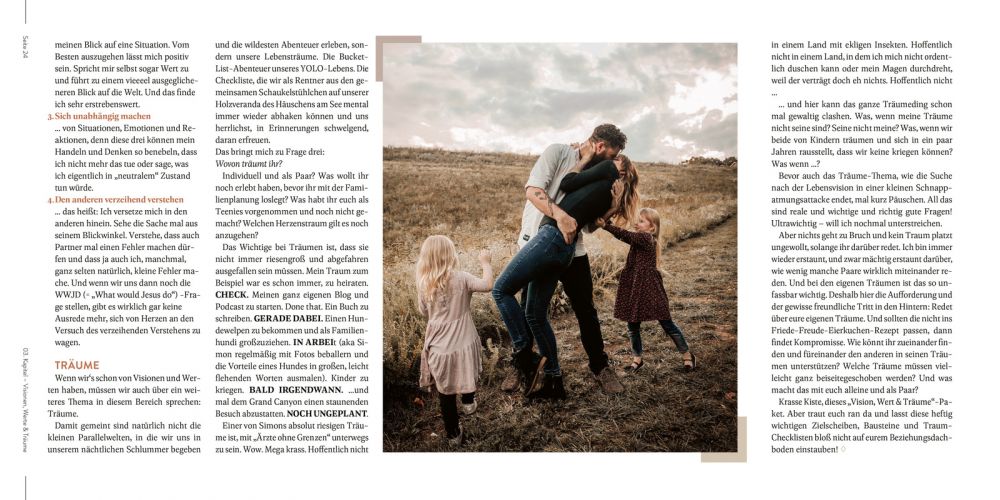 Das Geschenkbuch, das sich Paare auf die Wunschliste setzen. Melli Klepper selbst frisch verheiratet feiert in diesem Buch die Liebe. Erfrischend offen und mit einer Prise Humor schreibt sie über Vorfreude auf das Leben zu zweit, über Mut, Glauben, Romantik und gemeinsamen Alltag. Ein Buch, das auch optisch den Nerv ihrer Generation trifft, mit vielen Tipps und klugen Gedanken.