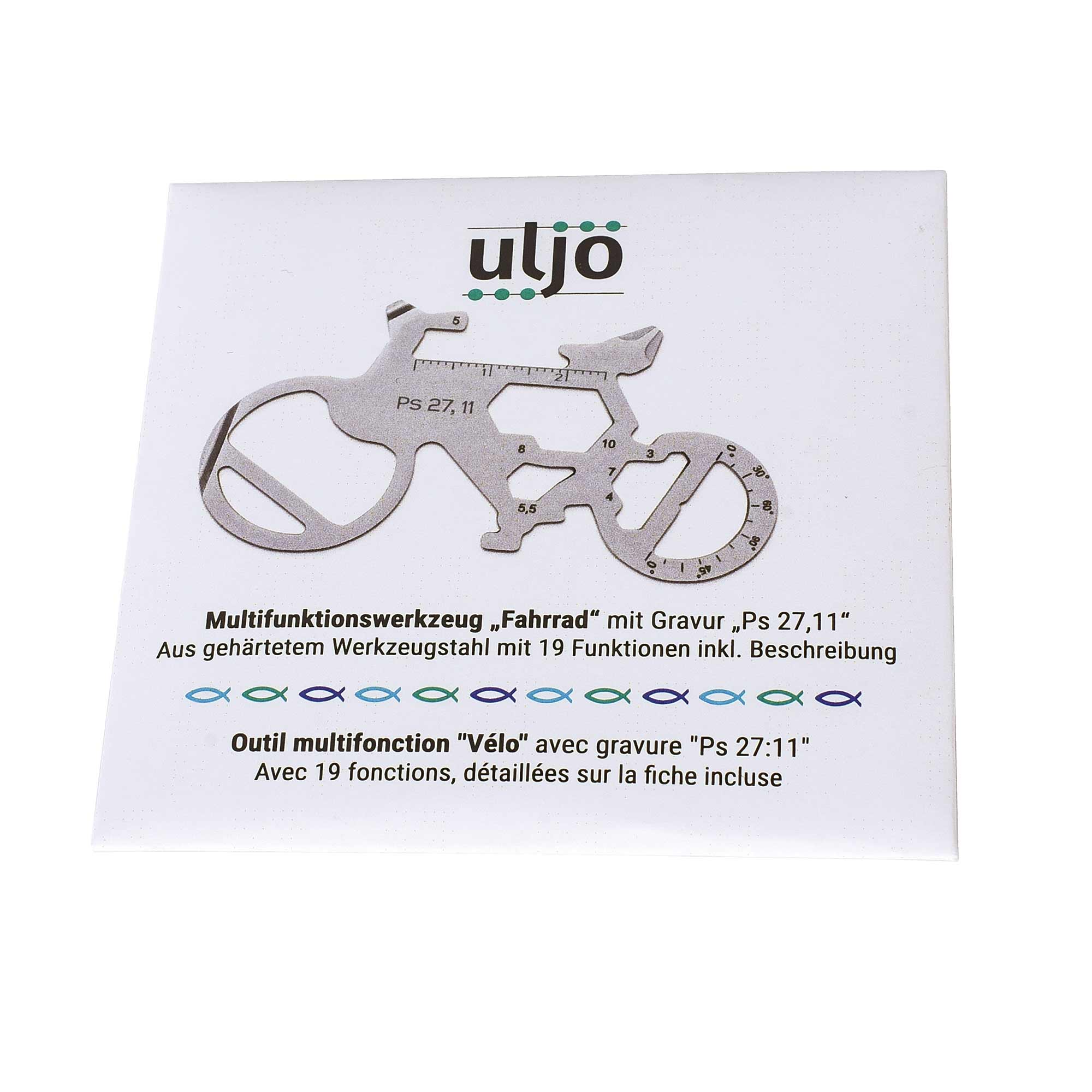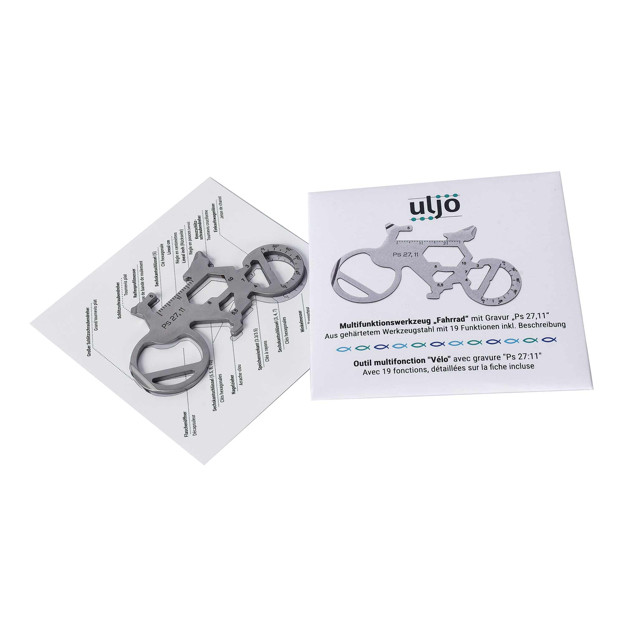 Multifunktionales Werkzeug "Fahrrad" mit 19 Funktionen inkl. Beschreibung und feiner Gravur