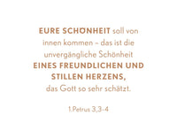 50 liebevoll gestaltete Karten mit Bibelversen voller Zusagen. Sie ermutigen dazu, echt zu leben und das Vertrauen auf Gott zu setzen. Perfekt zum Weitergeben oder um sich immer wieder daran erinnern zu lassen, wie wertvoll wir in Gottes Augen sind.