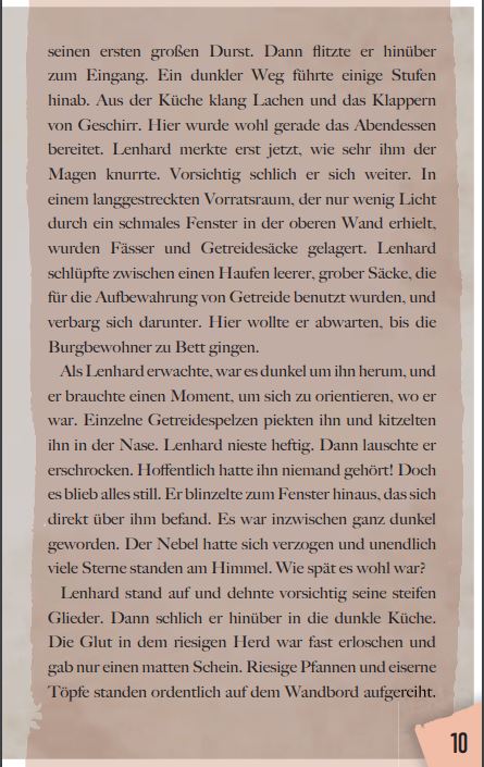 Doch er wird entdeckt und vor den Burgherrn geschleppt. Ob ihm die Burgleute eine Chance geben werden? Kann Lenhard ihnen vielleicht sogar beistehen im Kampf gegen ihren feindlichen und gefährlichen Nachbarn Garland?