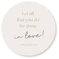 Der Bibelvers in englischer Sprache stammt aus 1. Korinther 16,14: