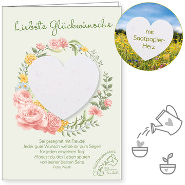 Liebste Glückwünsche (Faltkarte mit Saatpapierherz)