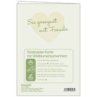 Faltkarte mit Saatpapierherz (Wildblumensamen) und Umschlag.