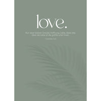 Text: love. - Nun aber bleiben Glaube, Hoffnung, Liebe, diese drei; aber die Liebe ist die größte unter ihnen.