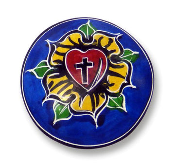 Briefbeschwerer aus Speckstein in der Farbe Blau, mit Motiv "Lutherrose", exklusiv für Uljö zum 500jährigen Reformationsjubiläum in Handarbeit hergestellt, ca. 4,5 cm