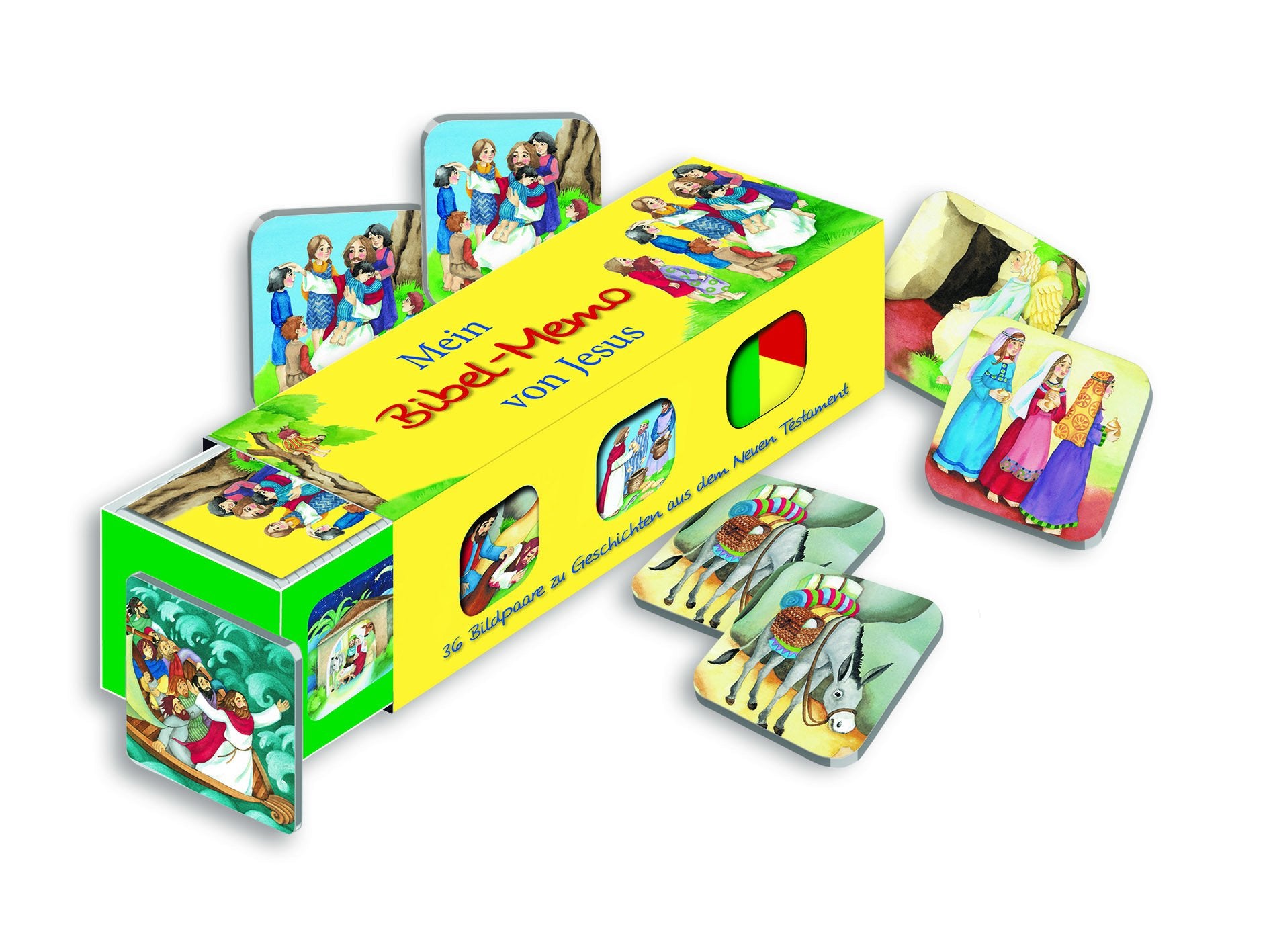Mit diesen 72 Spielkarten für 2 bis 8 Personen können Kinder ab ca. 4 Jahren spielerisch und mit Spaß Motive zu Geschichten aus der Bibel entdecken. 36 Bildpaare werden gesucht und von den Kindern schnell gefunden. Ein kleines Begleitheft informiert über die Bildmotive und bietet eine kurze Inhaltsangabe der dazugehörigen biblischen Geschichten. Ein Spaß für Familien, Kindergärten und in der Gemeindearbeit mit Kindern.