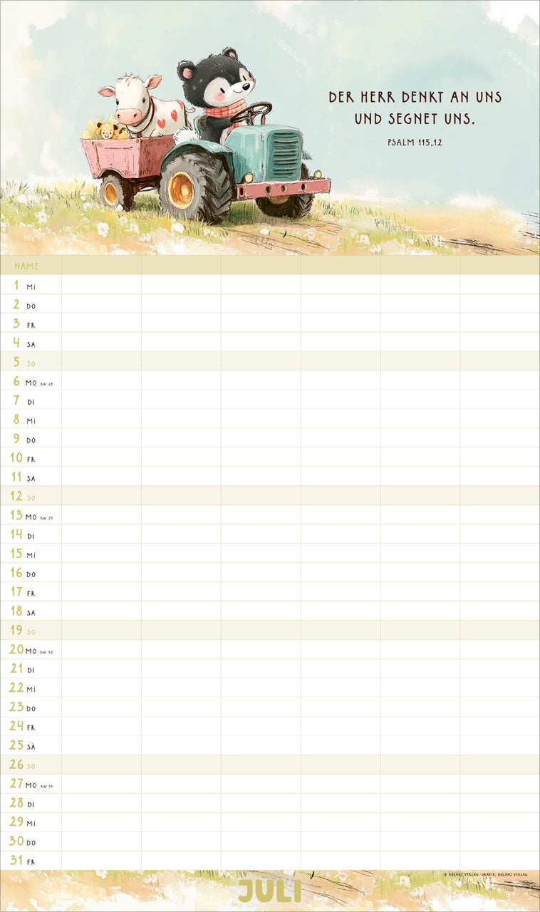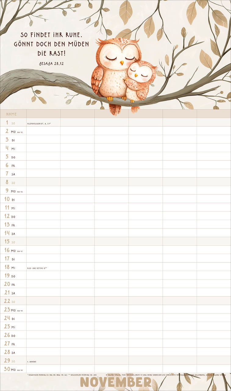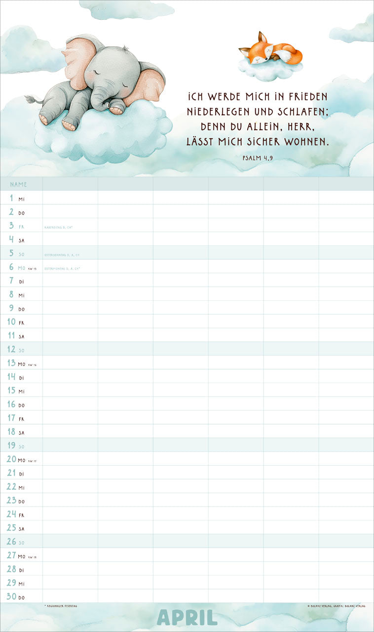 Wann kommt Oma zu Besuch? Geht Anna am Donnerstag reiten? Mit dem Familienplaner überblicken Sie alle Termine - eine echte Hilfe, um das Familienleben gemeinsam zu gestalten. Lustige Zeichnungen und anregende Bibelverse bereichern den sechsspaltigen Planer.