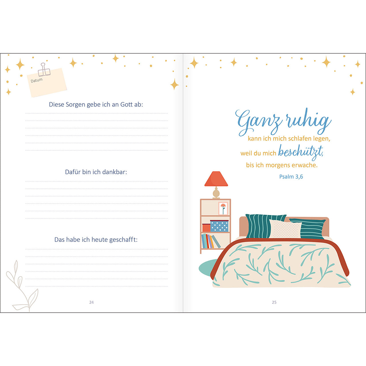 Fällt es Ihnen abends schwer zur Ruhe zu kommen? Machen Sie es sich mit diesem ganz besonderen Tagebuch gemütlich, und genießen Sie eine wertvolle Auszeit vor dem Schlafen. Freuen Sie sich noch einmal über die Erfolge des Tages, schauen Sie dankbar auf die schönen Momente zurück und legen Sie Ihre Sorgen in Gottes Hand.