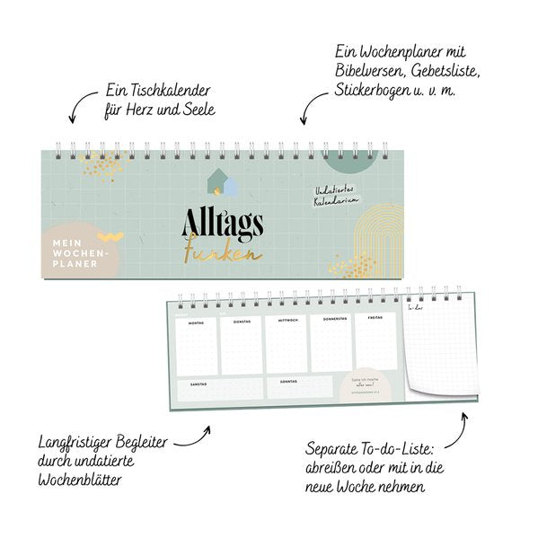 - Mehr als ein Wochenplaner: mit Bibelversen, Gebetsliste, Stickerbogen u. v. m.