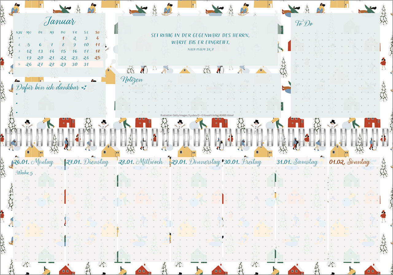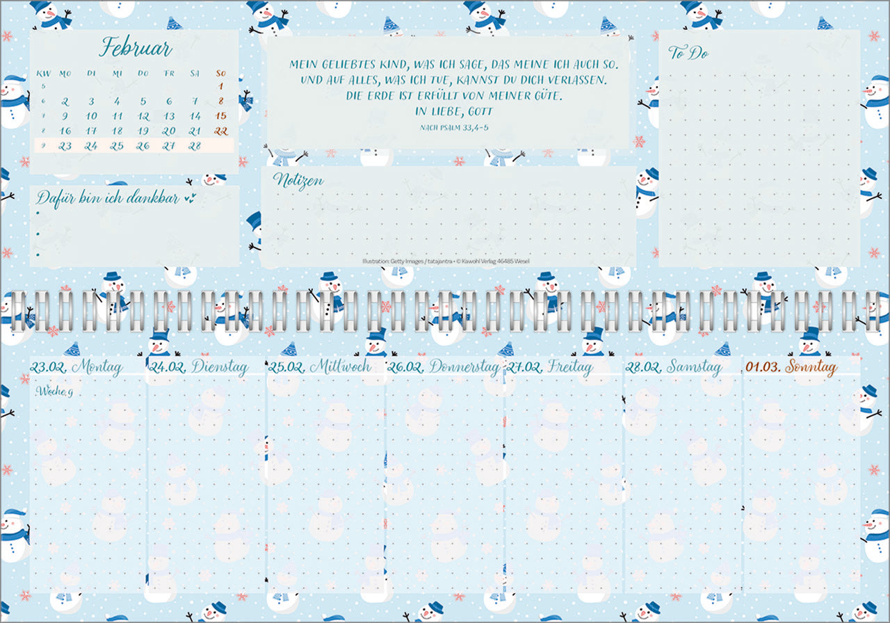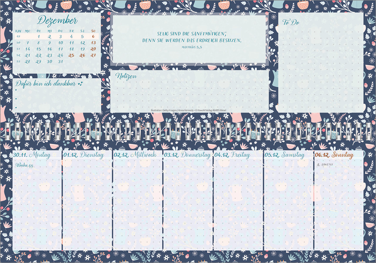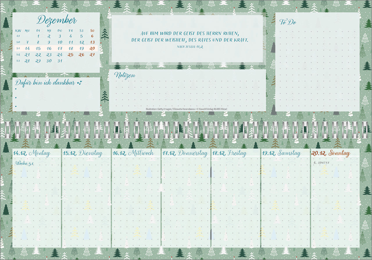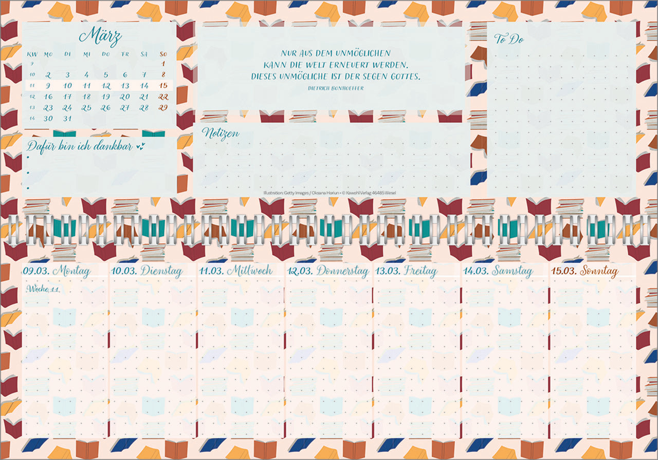Wöchentliche Bibelverse oder christliche Zitate geben wertvolle Denkanstöße und die farbenfrohen Muster sind ein echter Blickfang.