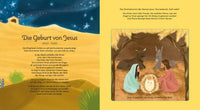 Eine wunderbare Gelegenheit für alle Kinder ab 3 Jahren, denen es nicht reicht, ein Buch einfach nur anzusehen oder vorgelesen zu bekommen! Wenn Sie die Geschichte vorlesen, kann Ihr Kind sich beteiligen, indem es das bunte Rad dreht, die Klappen öffnet und entdeckt, wie sich die Geschichte dadurch weiterentwickelt. Die biblischen Erzählungen von der Schöpfung, Gottes Versprechen an Abraham, Jesu Geburt, seine Wunder sowie sein Tod am Kreuz und weitere können auf eine aufregende Art und Weise gemeinsam erlebt werden.