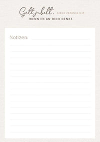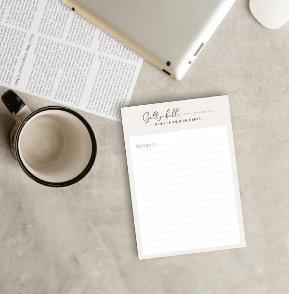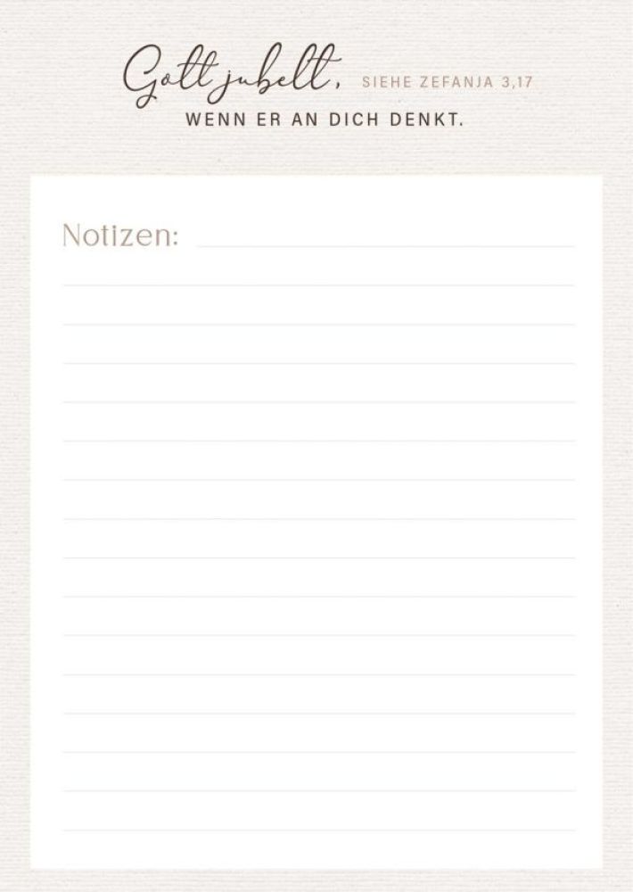 Auf jedem Notizzettel befindet sich ein kurzer Text, der nach Zefanja 3,17 verfasst ist: