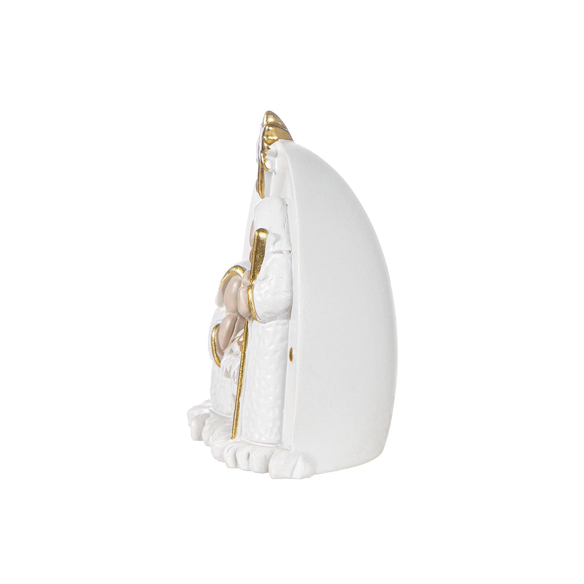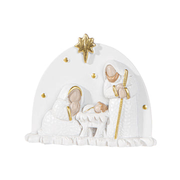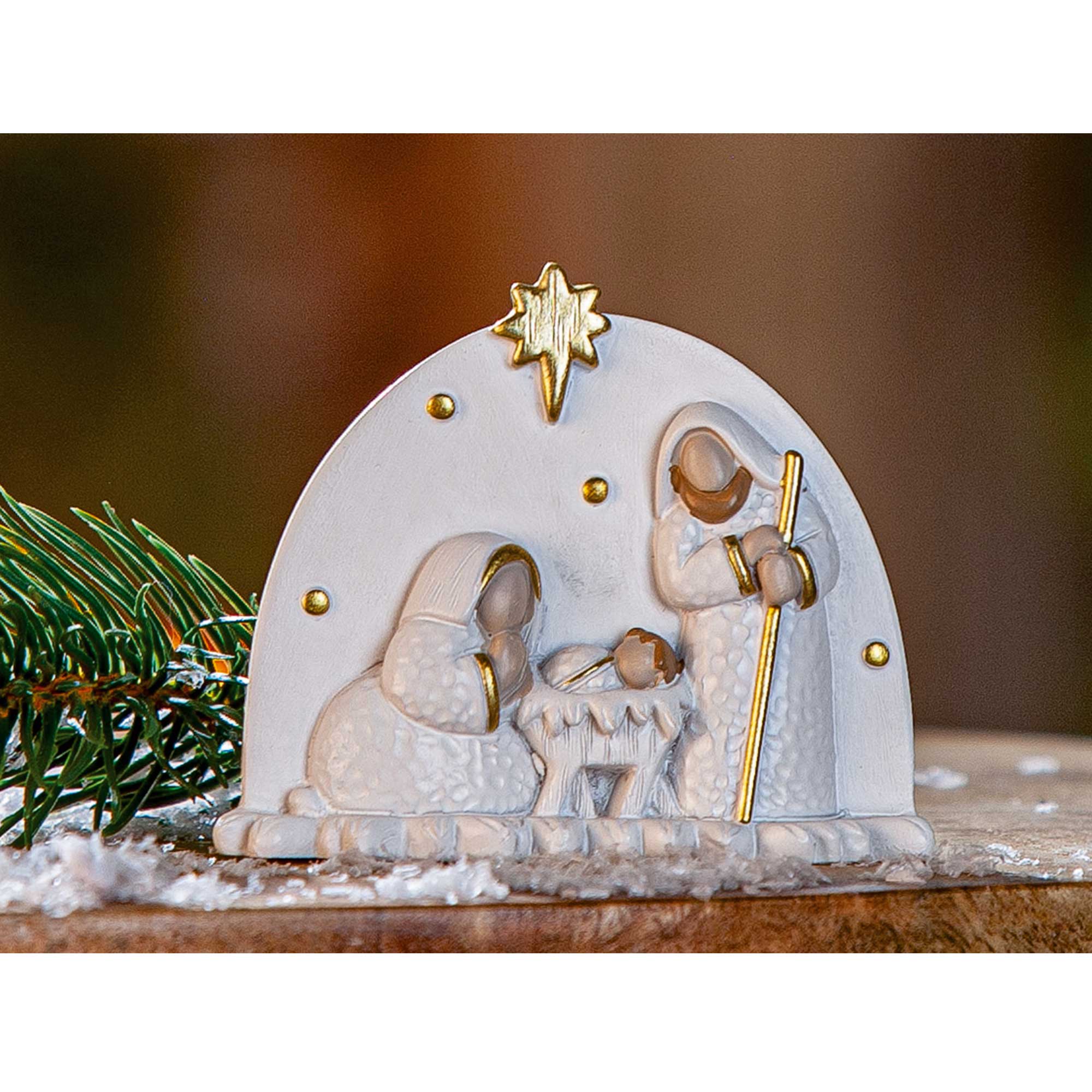 Die dekorative kleine Krippe vereint Tradition mit modernem Design und findet überall einen Platz. Auf der Fensterbank, im Regal oder auf dem Tisch - die weiße Krippe mit den goldfarbenen Verzierungen schafft schnell ein festliches Ambiente.