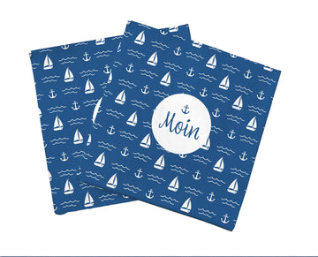 Eine wunderschön gestaltete Serviette mit maritimen Motiven in warmem Blau gehalten. Für alle Freunde des Meeres.
