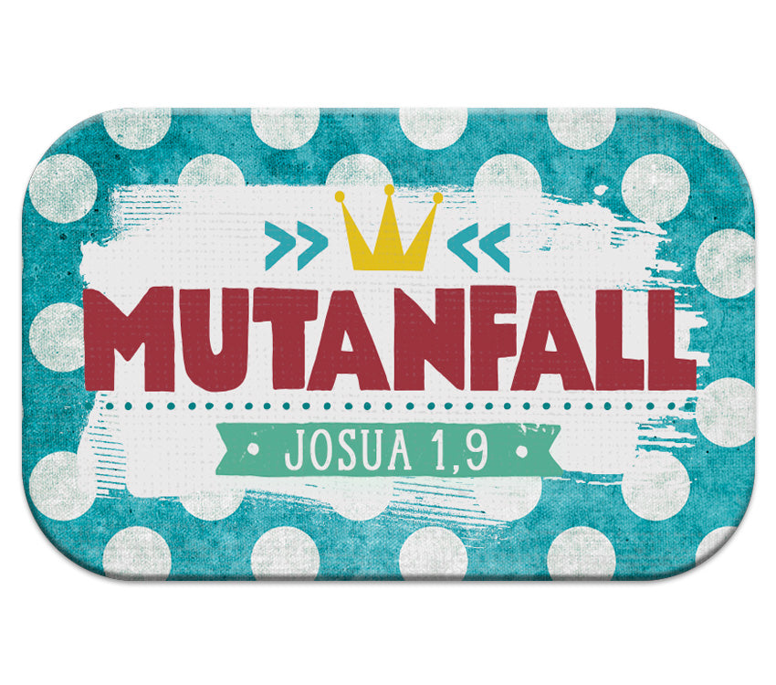 Der Magnet und ein farbiges Kärtchen mit Bibelzitat auf der Rückseite sind zusammen in einer Folie verpackt.