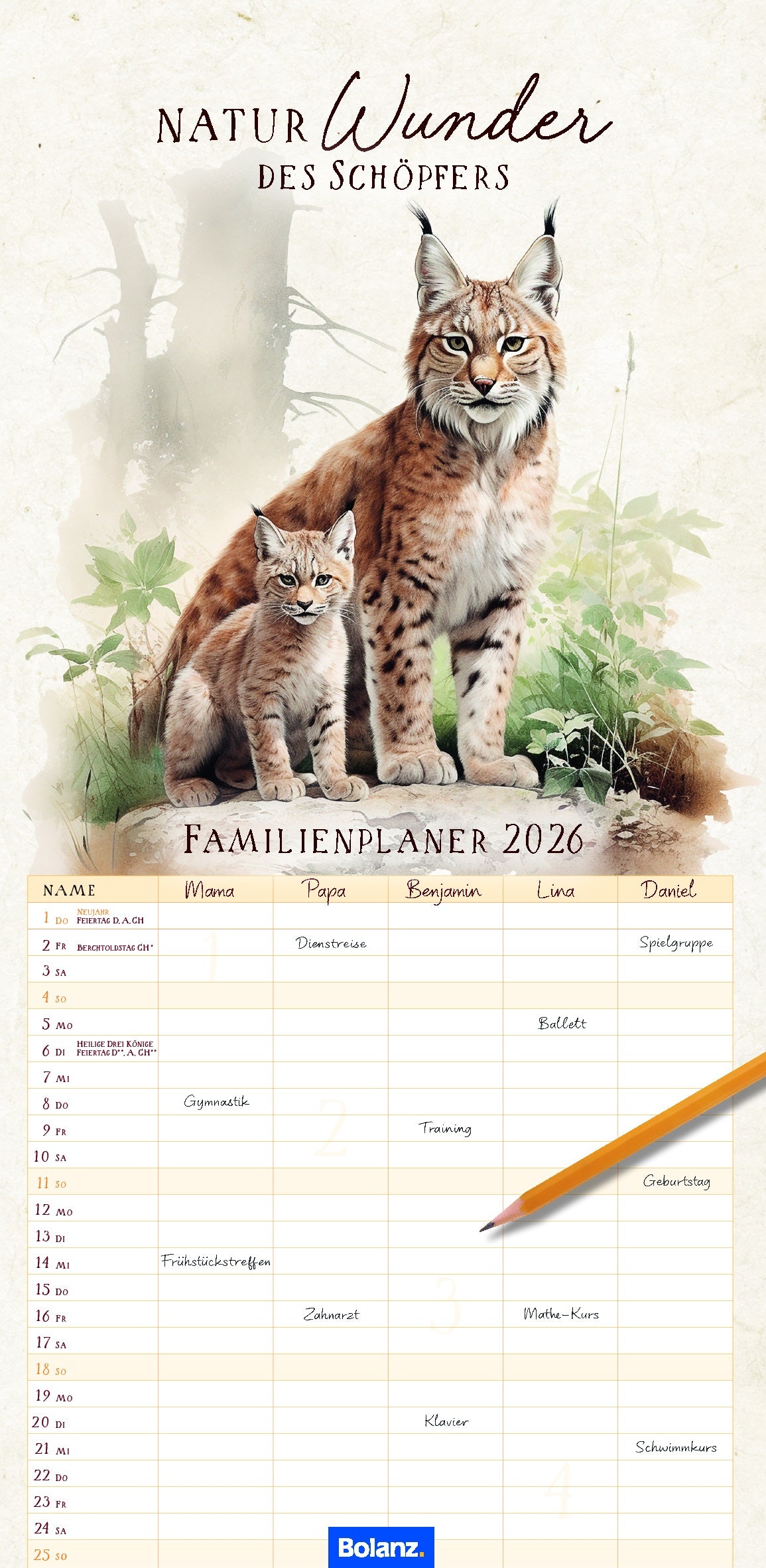 Naturwunder des Schöpfers 2026 (Familien-Wandplaner)